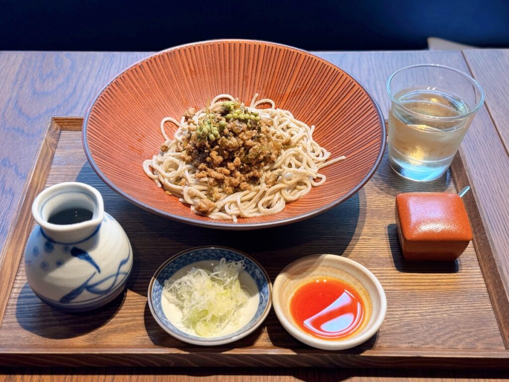 まず、運ばれてきた瞬間にふわっと立ち上る山椒の爽やかな香りが印象的です。細めのそばにたっぷりと絡む特製つゆと、甘辛く味付けされたひき肉、そして山椒のピリリとしたアクセントが絶妙に絡み合い、ひと口目からやみつきに……!
