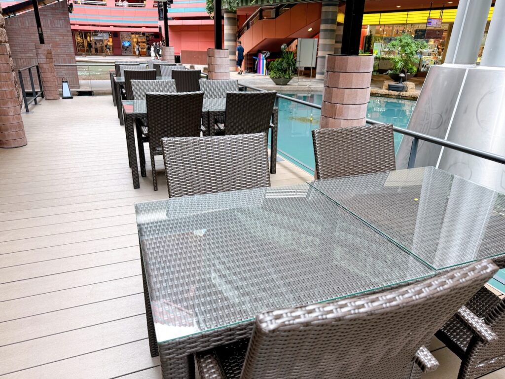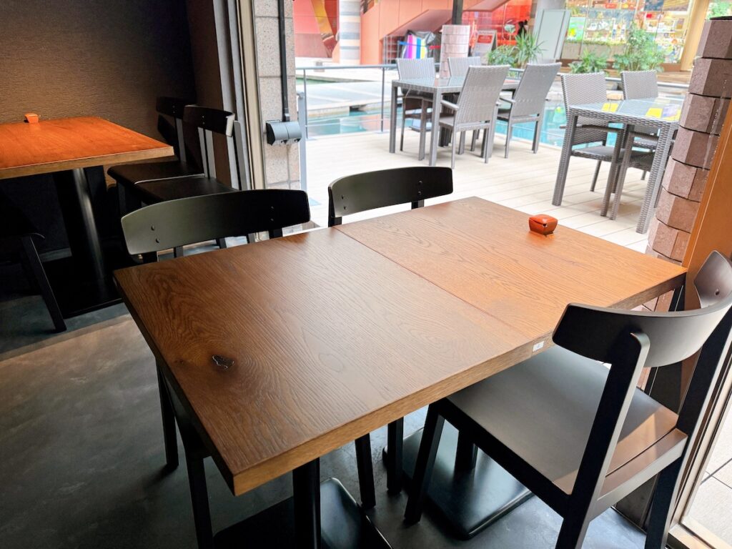 テーブル席のほか、運河沿いには風通しの良いテラス席も完備。昼は明るく、夜はしっとりとした雰囲気のなかで、食事と会話を楽しめます。