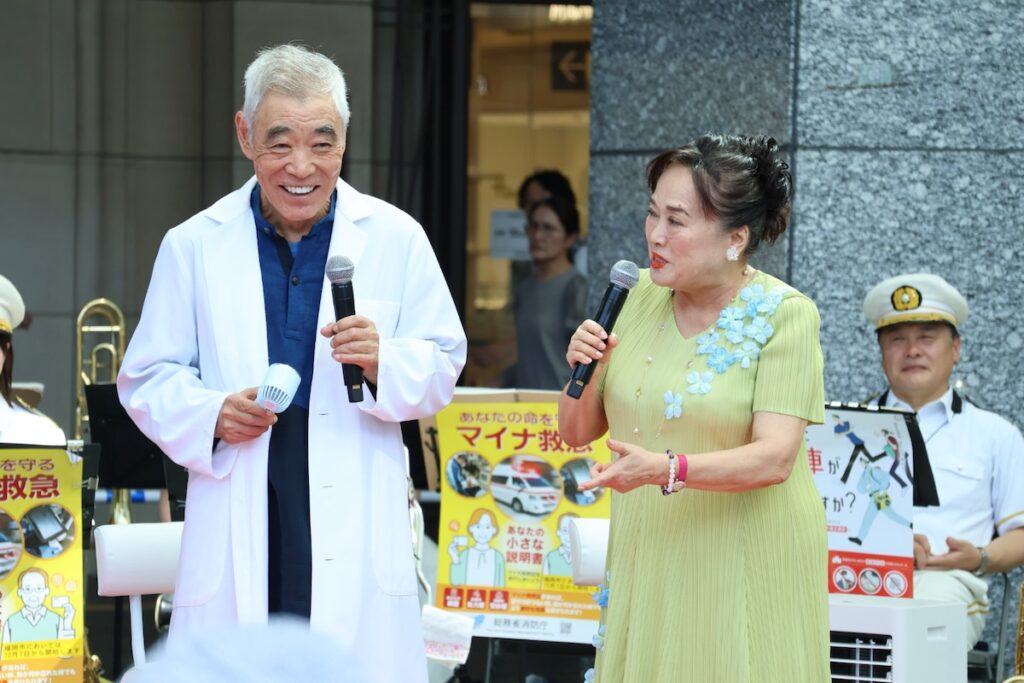 本日、9月9日(火)は「救急の日」!JR博多駅前広場では9月3日に救急医療の大切さを伝えるイベントが開催されました。当イベントでは、10月に博多座で上演される舞台『また本日も休診~山医者のうた~』に出演する俳優・柄本明さんや渡辺えりさんも登場。今回はイベントの様子をたっぷりとご紹介したいと思います。