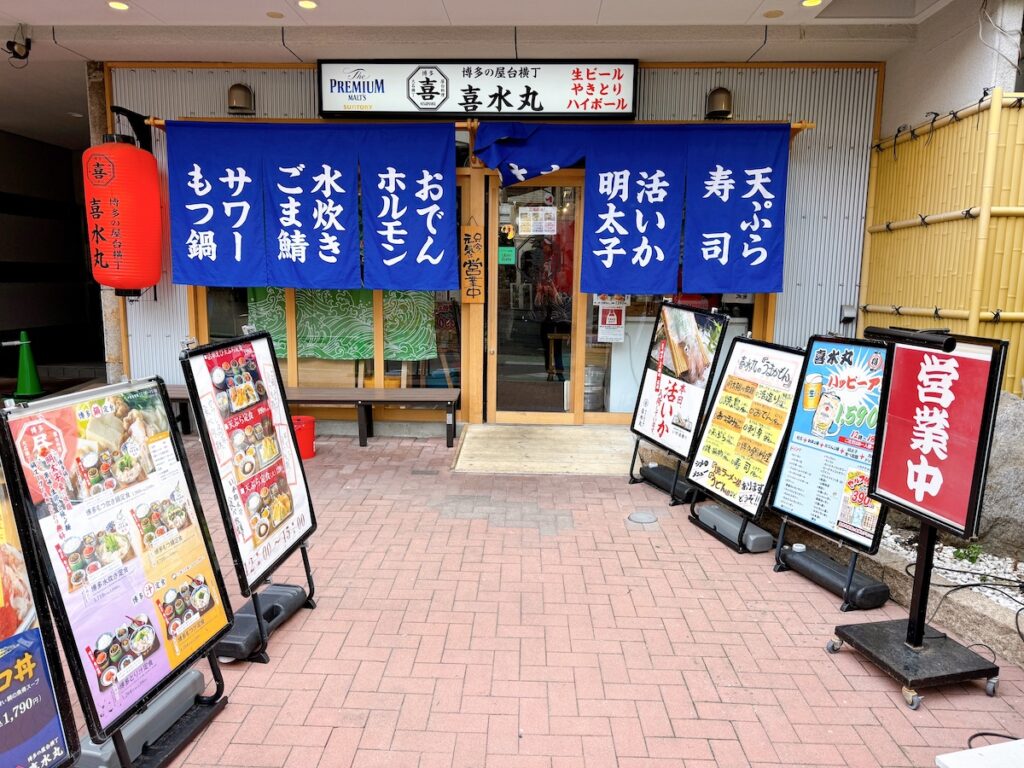 福岡市中央区大名にある博多の屋台横丁「喜水丸」は、全天候型の屋台として観光客や地元民に愛されるお店です。