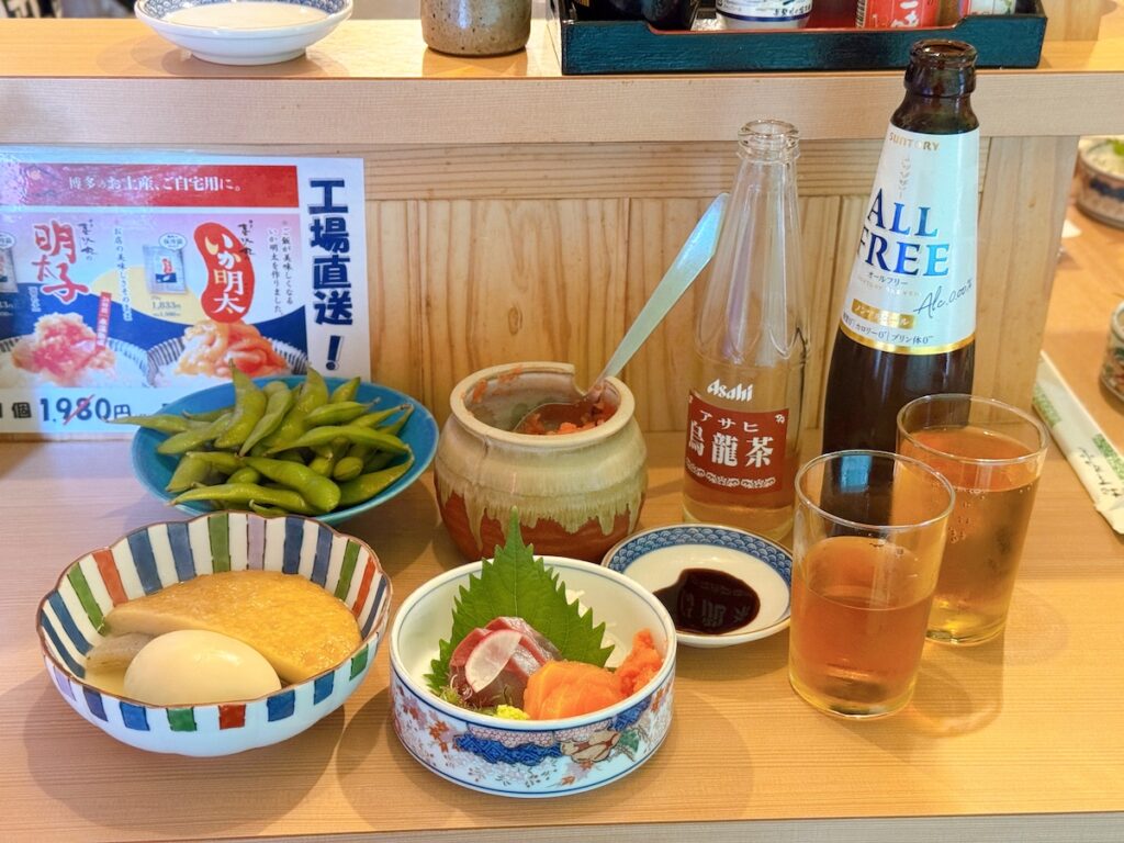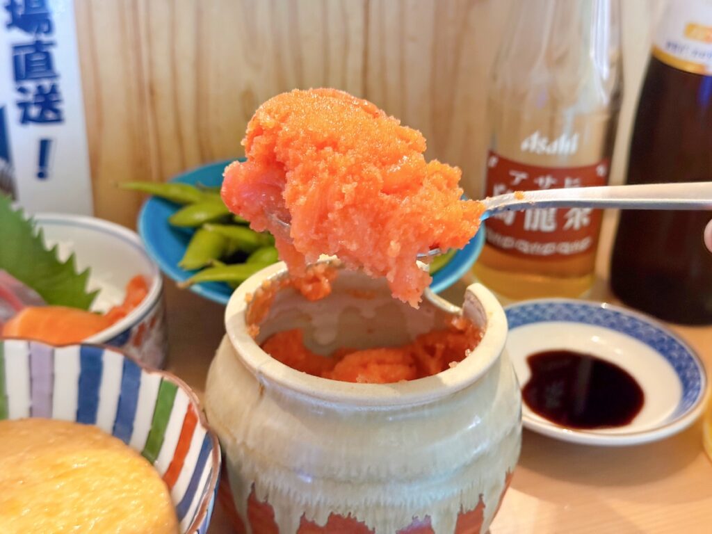 新鮮な魚介類をはじめ、焼鳥、おでん、寿司など、喜水丸ならではの美味しい料理が並び、明太子はなんと食べ放題……!