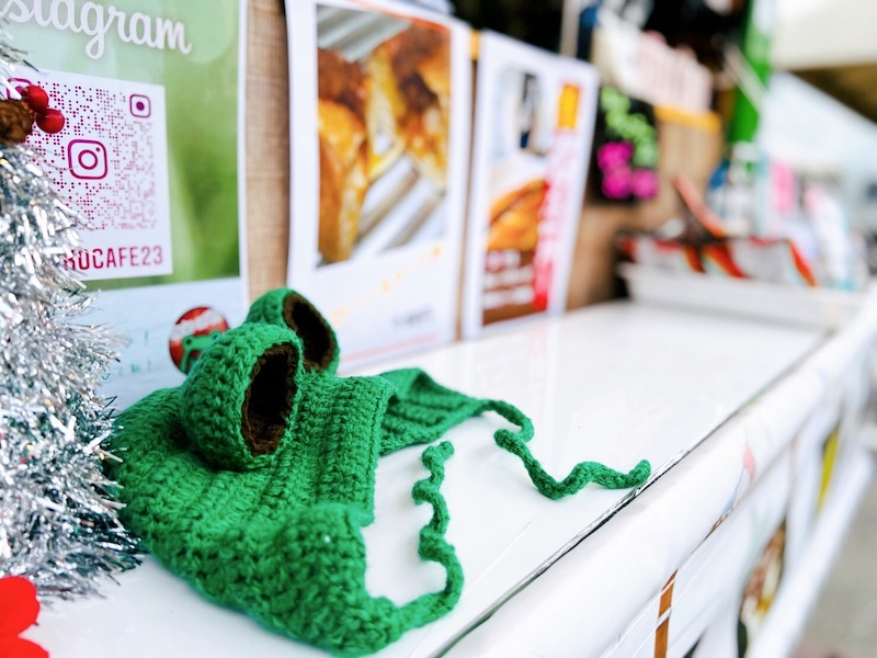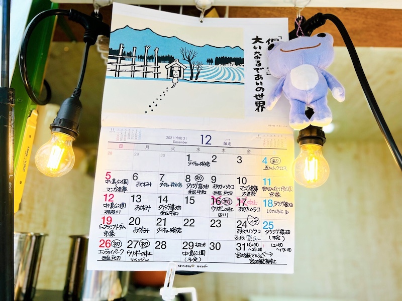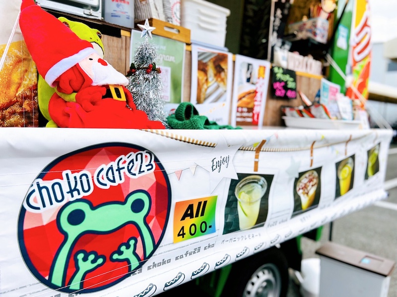 オーナーのえみっちさんが大好きだという”かえる”が描かれたキッチンカーには、所せましとかえるのぬいぐるみやマスコットが飾られています。筆者が訪れた12月中旬はクリスマス前との事もありクリスマスの装飾もあってにぎやかでした!