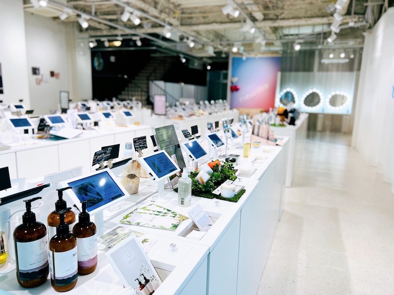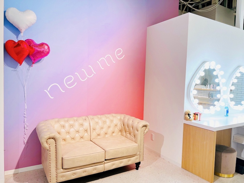 new meは「新しい私へ」をコンセプトとした今までになかった新しい体験型のとなっており、ネットで気になっていたけど試してみる機会がなかった商品を目の前で見ることができるのが特徴的です。