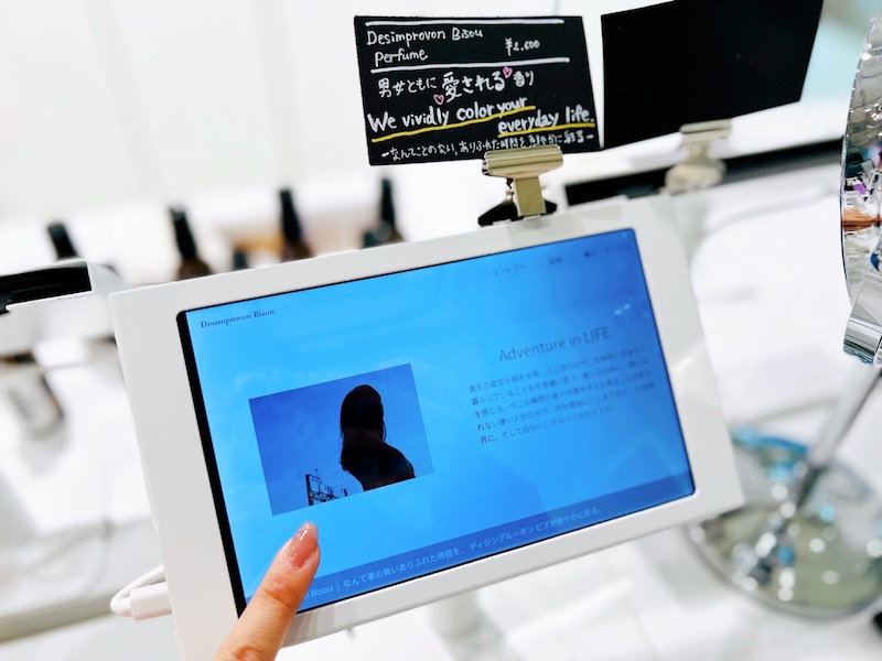 各商品の前にはタブレットが設置されており、商品の説明や購入はすべてこちらのタブレットで行えます。お支払いもQRコードを読み取って自分のスマホでオンライン決済ができるので便利!スタッフの方に詳しく説明していただけるので安心してお買い物を楽しむことができますよ。