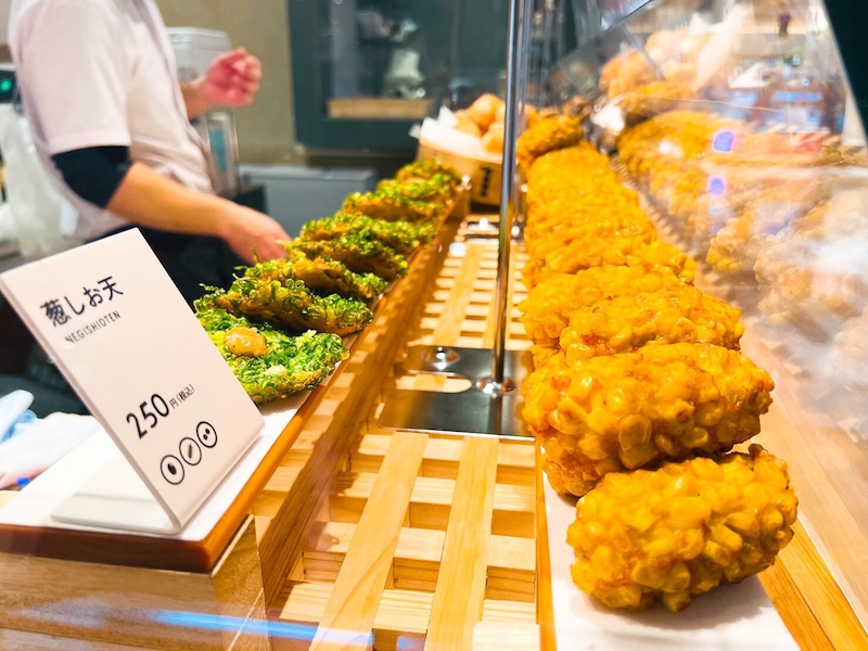 私のイチオシ「葱しお天(250円)」はびっしりと敷き詰められた葱の上に塩ダレがかかっています。この塩ダレがさつま揚げとの相性バツグン!お酒のおつまみとしてもおすすめです。