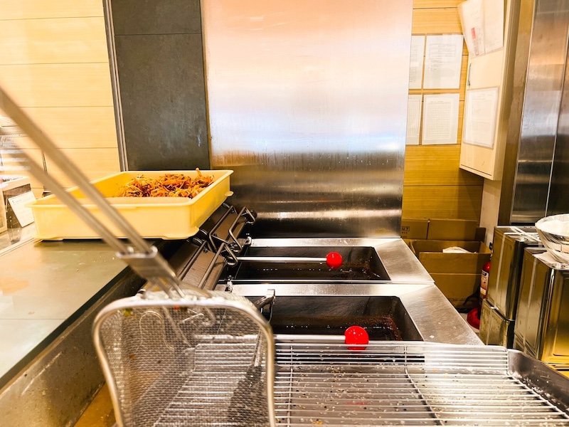 店舗奥にある厨房で毎日揚げられるさつま揚げは、タイミングがよければ揚げたてをいただくことができますよ。