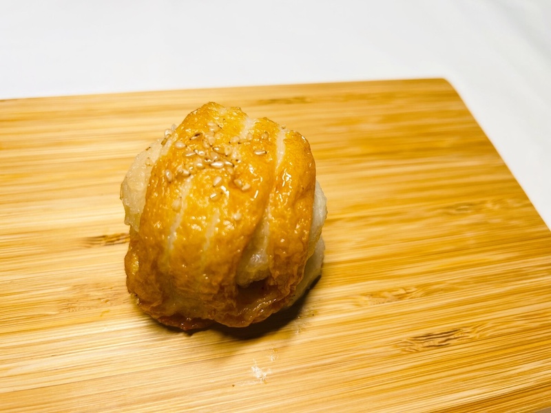人気NO.1という「焼きもろこし(280円)」はさつま揚げの周囲をとうもろこしで覆っており、とうもろこしの食感と甘さを堪能できます。