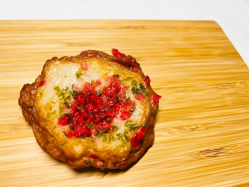 「半熟卵天(280円)」は2月までの冬季限定商品で、特製のすり身の中にとろとろの半熟卵が入っています。下にはシャキシャキのれんこんがあり食べごたえがありますよ♪