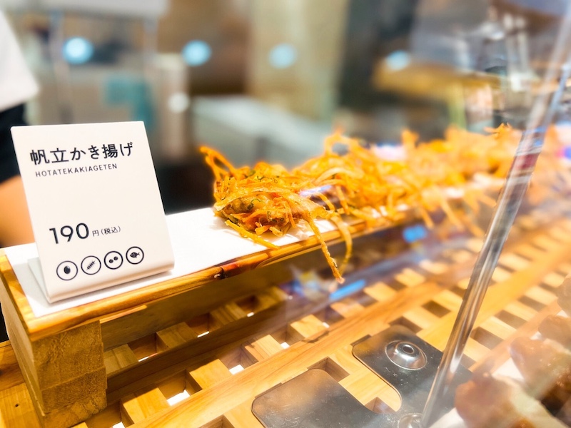 「帆立かき揚げ(190円)」は躍動感があり、手作りの良さを感じます。目で見ても楽しめますね!