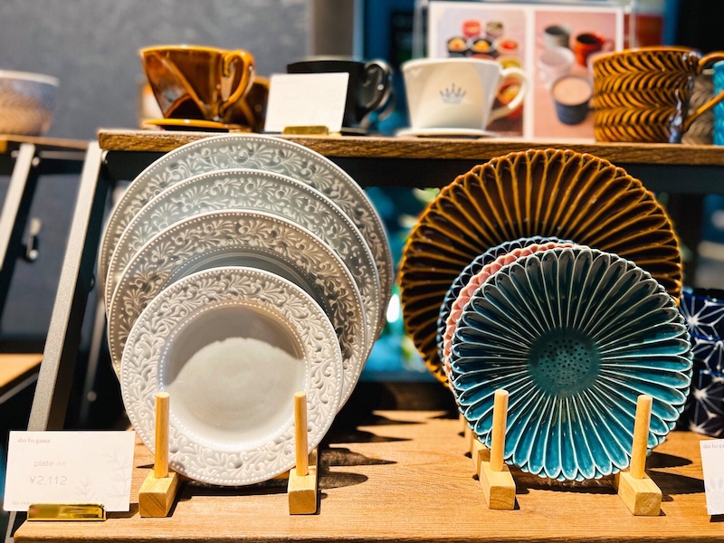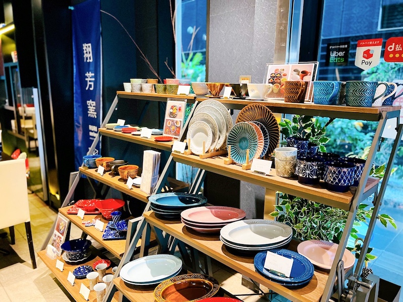 店内に入ると一番に目に入るのがずらりと並んだ焼き物。こちらは長崎県波佐見町にある「翔芳窯」の波佐見焼です。