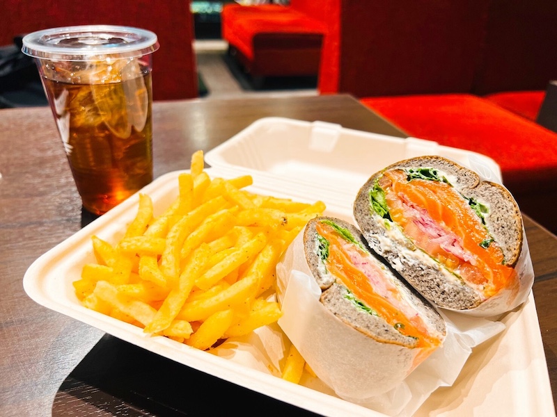 今回は人気メニューの「スモークサーモン(770円)」と「フレンチフライコンボ(330円)」をオーダー。フレンチフライコンボにはフレンチフライとドリンクがセットとなっています。