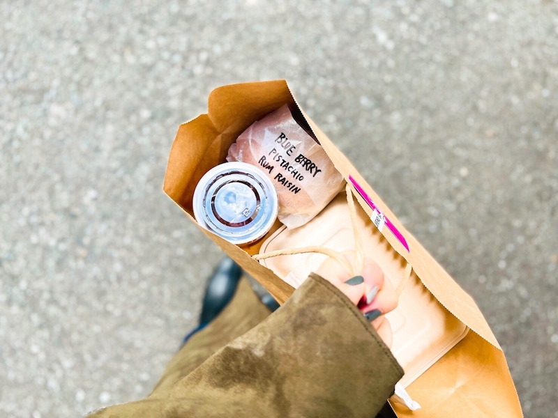 濃厚で香り高いピスタチオとラム酒に漬けこんだレーズンがたまりません…!大きなベーグルですが、あまりのおいしさにペロッといけちゃいます。