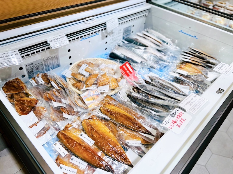 お刺身の他、干物なども充実しています。