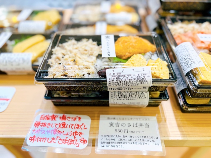 「寅吉のさば弁当(530円・税抜)」や「寅吉の鮭弁当(580円・税抜)」など食欲をそそるメニューが満載でした。