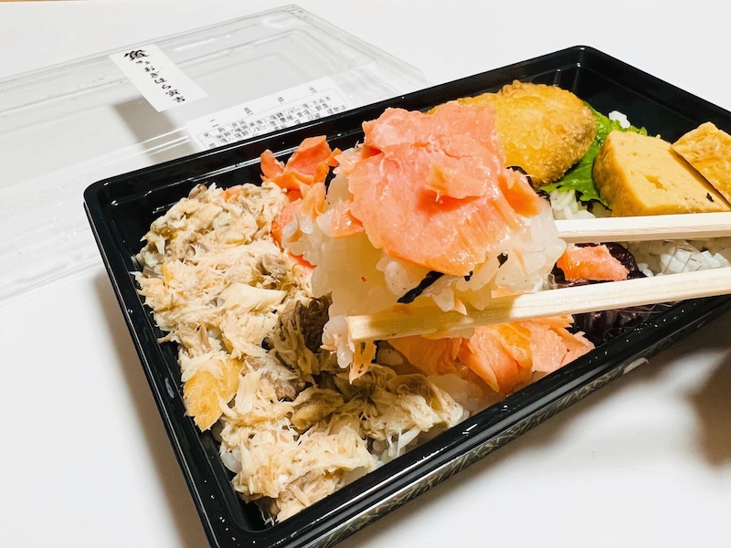 どちらにするか選べなかった私は「寅吉の二色弁当(580円・税抜)」に。こちらにはさばとシャケの両方が入っていてとってもお得!