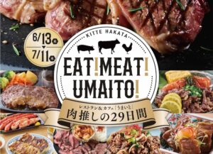 JR博多駅横の商業施設・KITTE博多では現在、夏を乗り切るためのスタミナ満点!お肉イベント「EAT! MEAT! UMAITO!」が開催中♪