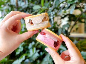 中でも「羽二重バターチーズサンド5種アソート」はいろいろなフレーバーが楽しめるセットで、餡バターやピスタチオ、いちごなど、どれも魅力的な味わいです。