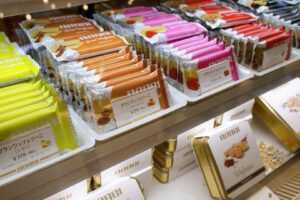 カラフルな7種類のパッケージで、見た目も華やか。大きめサイズでデザートとして満足感があります。ウエハースは高温多湿を避けて涼しい場所で保存がおすすめ。長時間の持ち歩きには保冷剤のサービスもあるそうです。