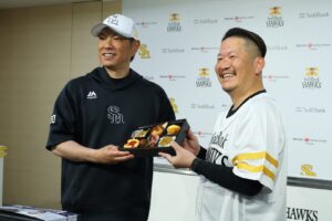 販売開始当日のお披露目会では福山シェフがこだわりを紹介し、サプライズで小久保監督も登場。監督は特にキッシュと和歌山県産の肉厚な梅干し、キーマカレーを推していました。