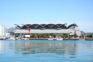 博多湾に面した「マリンメッセ福岡」は、最大収容人数約15,000人を誇る九州屈指の多目的アリーナ。国内外のアーティストのライブ、スポーツ大会、展示会など年間を通じて多彩なイベントが開催されます。