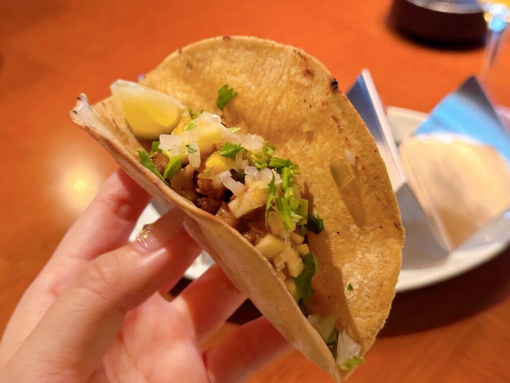 糸島豚を数種類のスパイスとフルーツで仕上げた「Style TACOS 糸島豚のアルパストール」は、甘みとピリッとした辛さが絶妙。