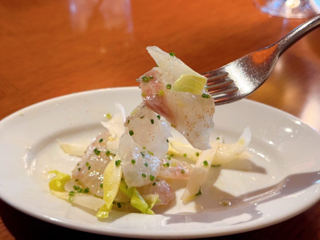 この日はスズキが使用されていて、爽やかな酸味と胡椒のアクセントが効いた一皿でした。
