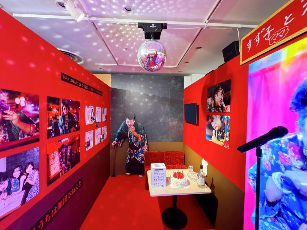 「すず子ママのナイトプレイス『ドイド』」では、煌めくミラーボールの下でマイクスタンドを手に、すず子ママと一緒にデュエットを楽しめますよ♪