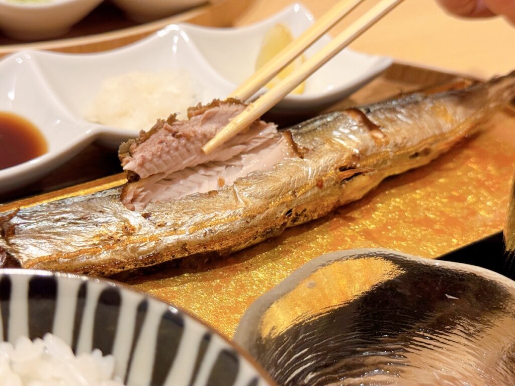 脂がのった新鮮な秋刀魚をシンプルに塩で焼き上げ、素材の旨みを存分に引き出した和定食スタイルです。