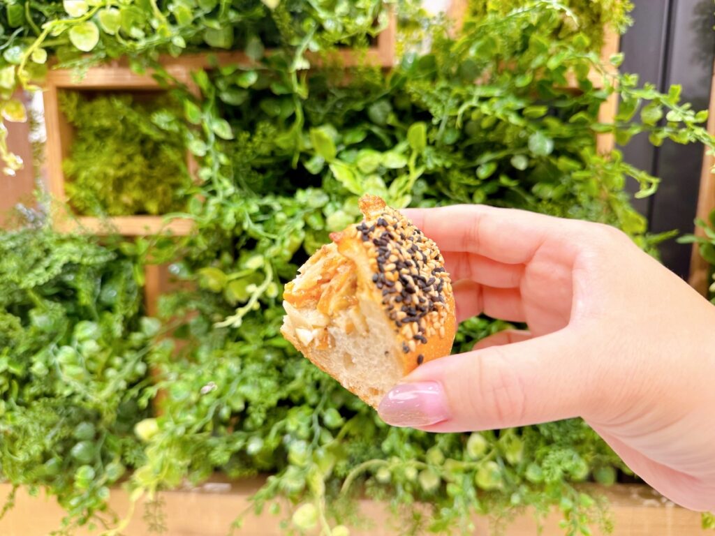 フランス直輸入のルヴァン種を使用した長時間冷蔵発酵生地に、福岡名物「ふくや」の明太子とバター、マヨネーズを合わせたソースがたっぷり。隠し味に昆布茶とはちみつを加えています。フランスパンでありながらも中はしっとりとした食感でとても食べやすい印象でした。