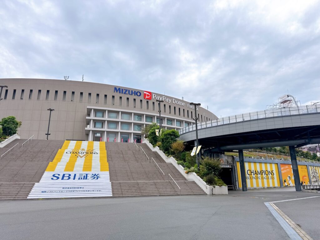 日本一を達成した直後から、みずほPayPayドームのコンコースのサイネージや外周の装飾が日本一仕様へと早替わり!