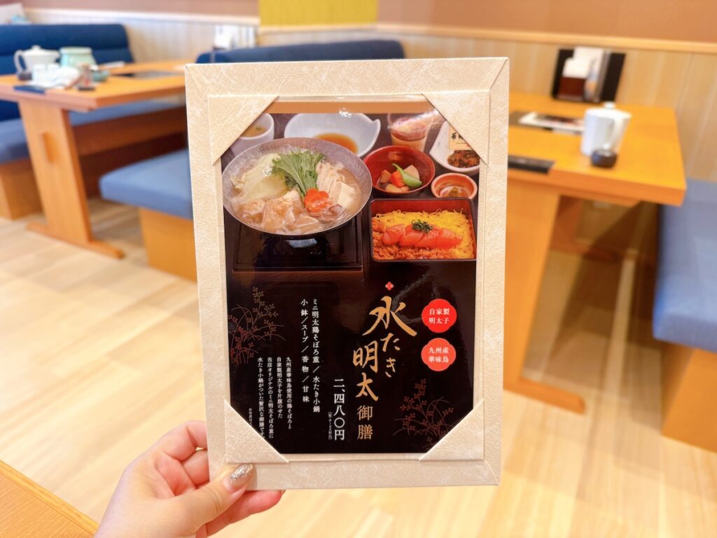 今回、中洲本店のランチタイムにいただいた「水たき明太御膳」(2,480円)。