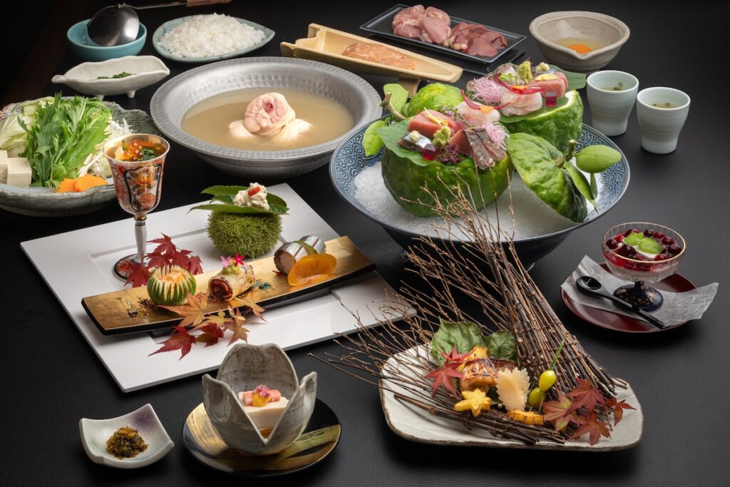 水たき料亭 博多華味鳥 中洲本店では、味コース(4,000円〜)のほか、中洲本店限定の「紅孔雀コース」(10,000円〜)をご用意。