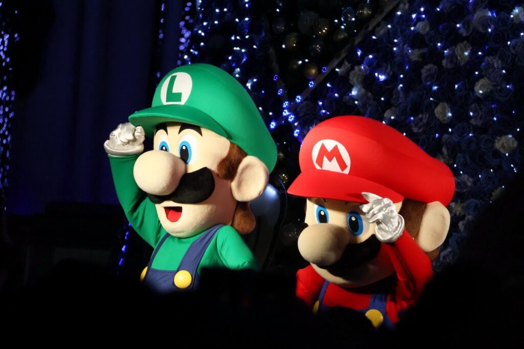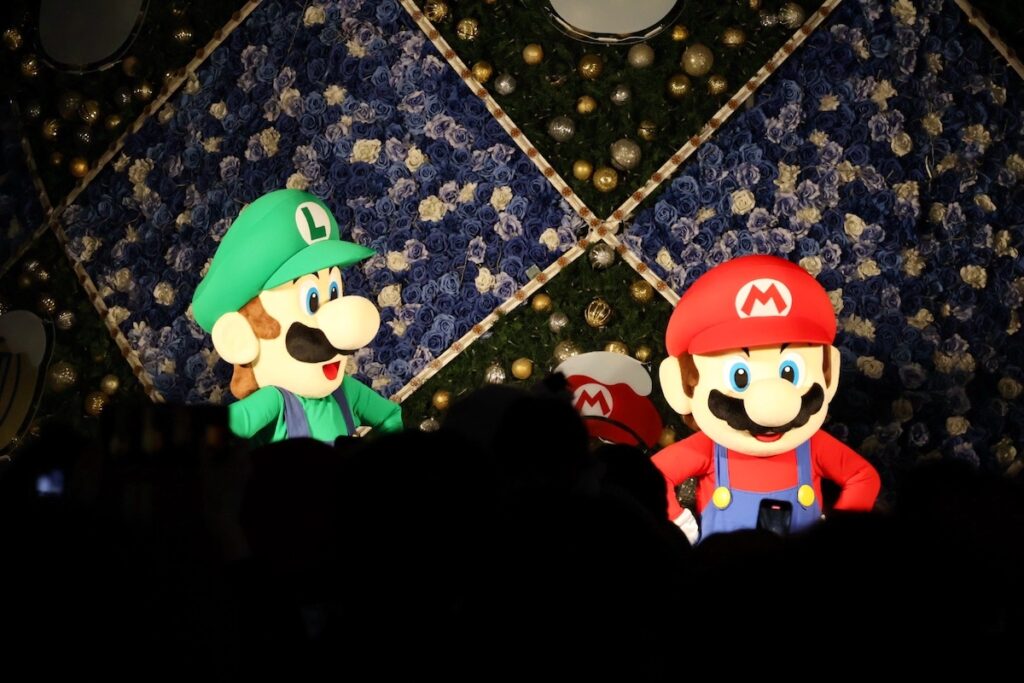 今回の点灯式の目玉といえばやっぱりスペシャルゲストのマリオとルイージの登場!