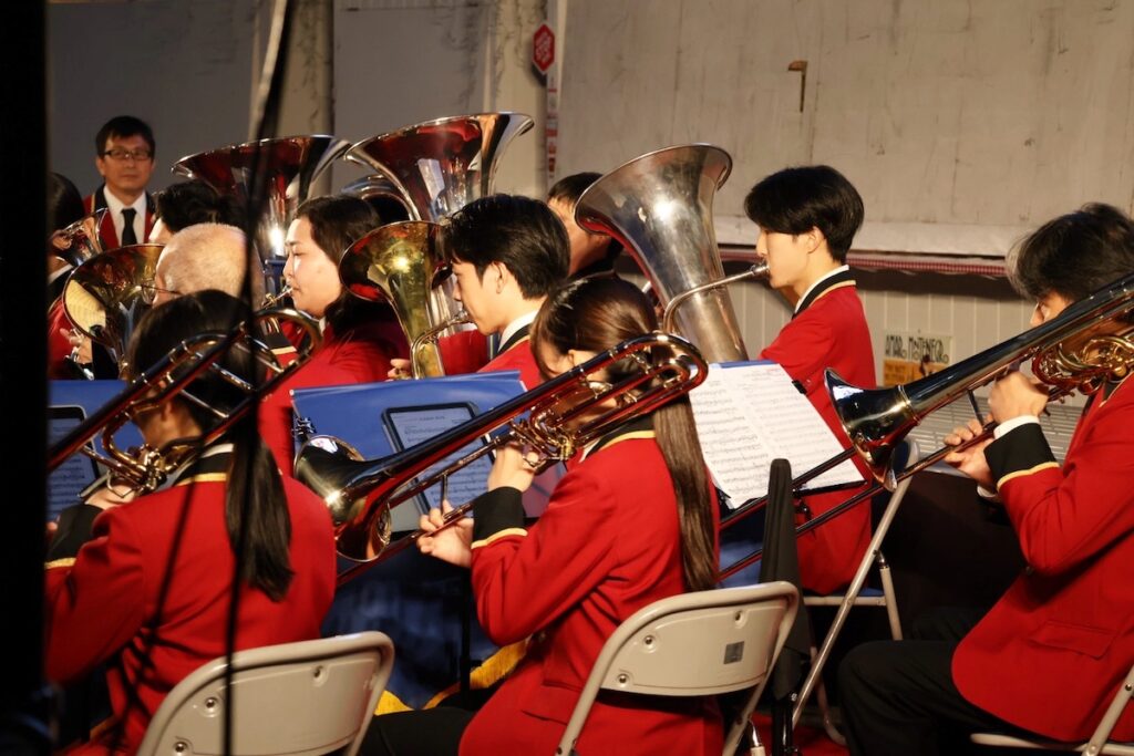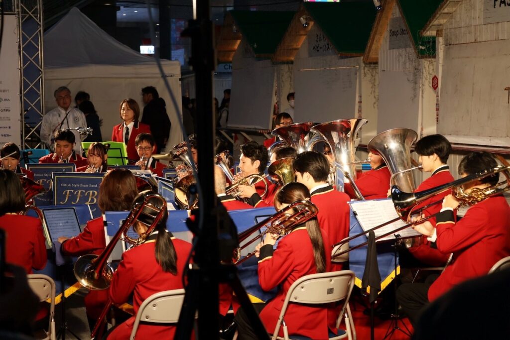 点灯式をさらに盛り上げたのが、英国式金管バンド「福岡フローリッシュブラス」によるライブ演奏です。「スーパーマリオブラザーズ」のメドレーは、耳慣れた懐かしいメロディで会場を包み込み、華やかな点灯式に華を添えました。