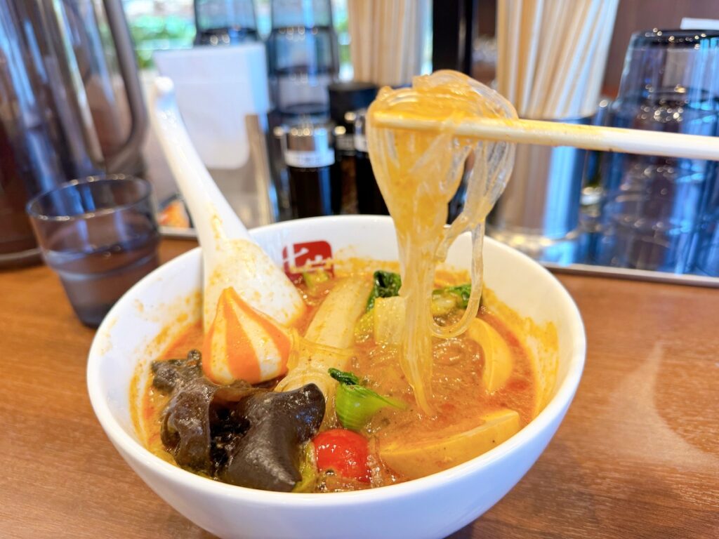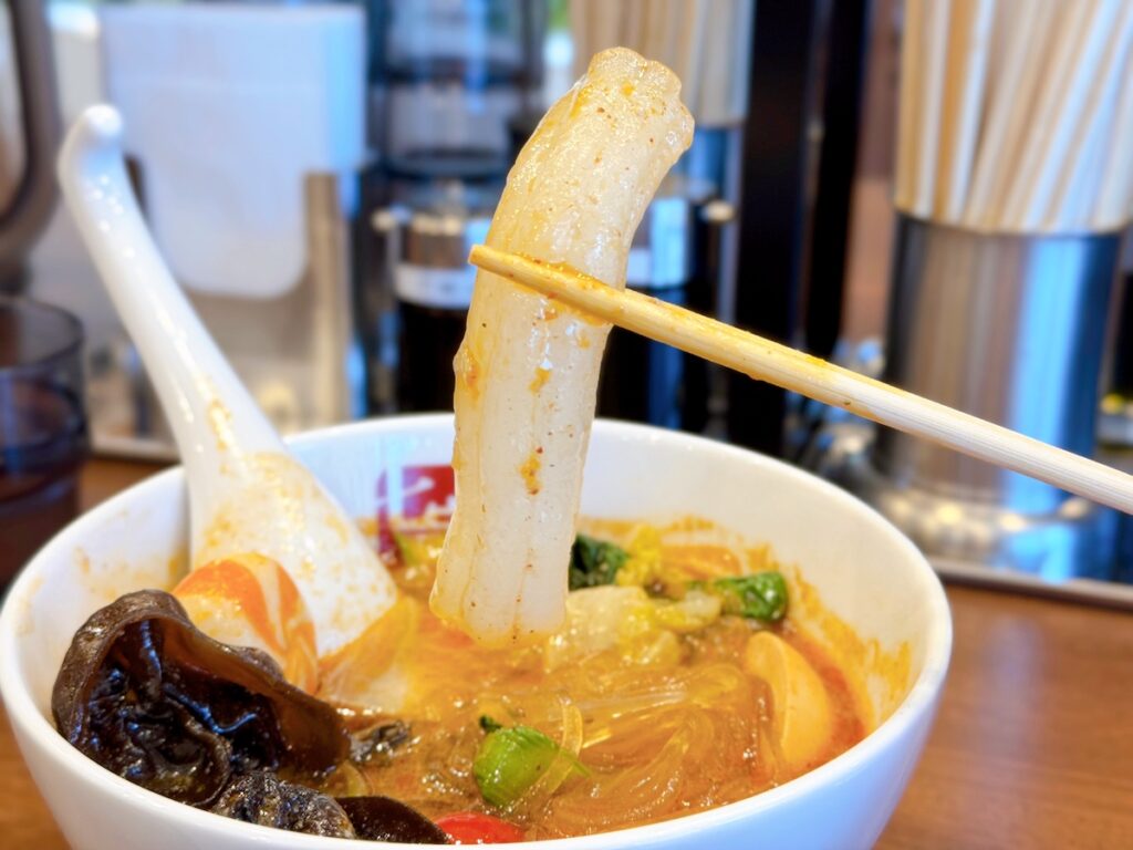 スパイスの深みを感じられるスープにつるんッとした喉越しの春雨。弾力もほどよくて、ヘルシーなのに食べ応えがあるのもうれしいポイント。