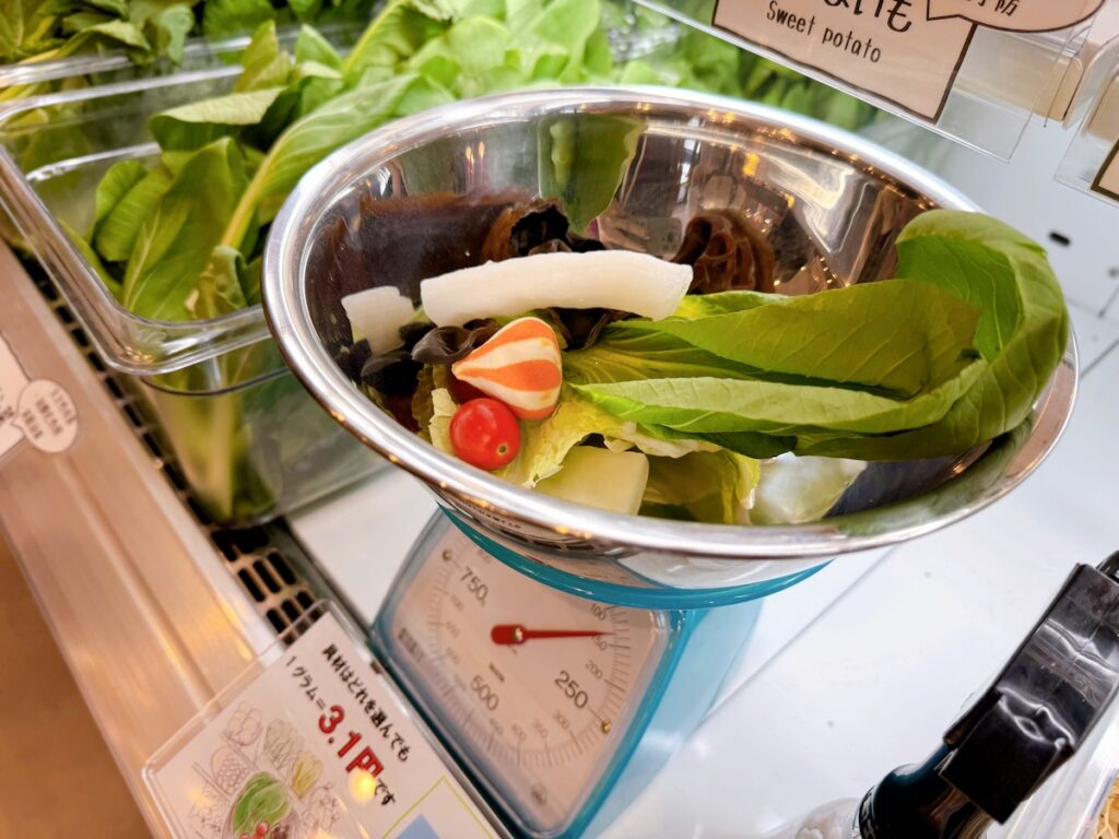 計りに乗せて重さで金額が変わるスタイルなので、具材を減らせば1,000円以内にもできるし、反対にたっぷり盛れば2,000円以上の贅沢な一杯も楽しめます。平均金額は1,250円ほどとのことでした♪