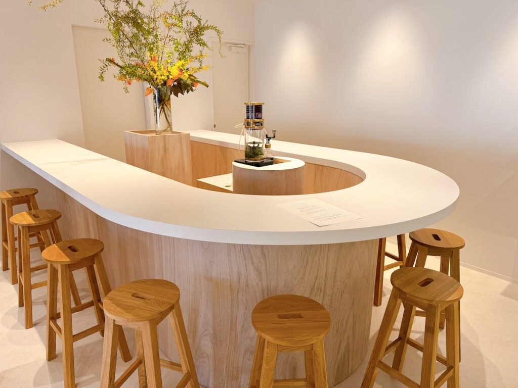 白を基調としたスタイリッシュな店内に入ると、ふわっと心地よい香りに包まれて一瞬で心が落ち着きます。