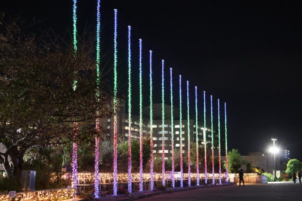 フラッグポールもさまざまな色に変化します。福岡ソフトバンクホークスの拠点であるこの場所で日本一の優勝を噛み締めながら冬ならではの幻想的な光の世界をぜひ体感してみてくださいね。