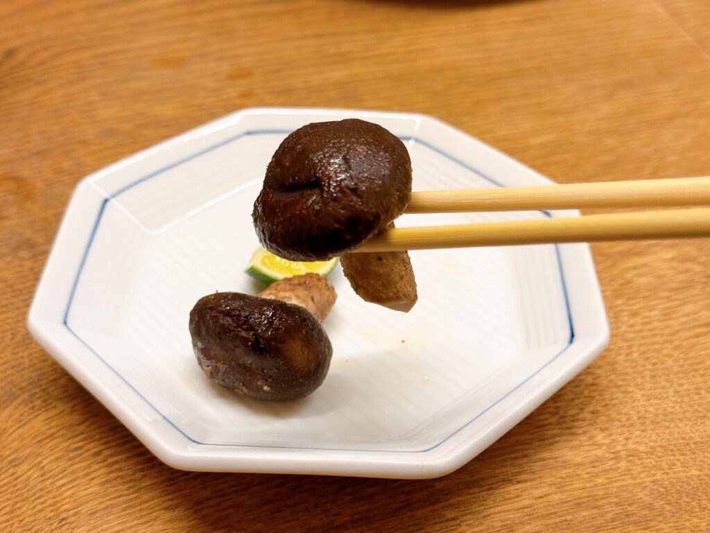 加熱されても失われない軸のシャキシャキ感と傘のプリプリ感の違いを存分に楽しめ、シンプルな調理法だからこそ素材の良さが際立つ一品でした。