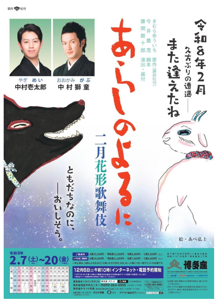 あの感動が再び博多座へ!二月花形歌舞伎『あらしのよるに』