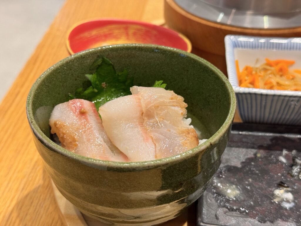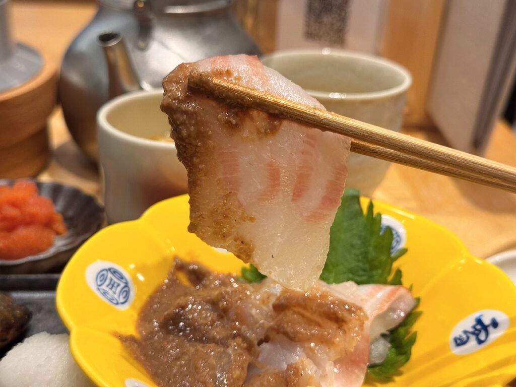 続きまして鯛の胡麻ダレ。お茶漬けにする前に、まずはお刺身で食べるのがおすすめです。