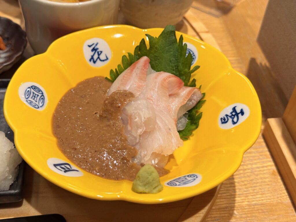 鯛は厚みがあり食べ応え抜群!胡麻ダレはとても濃厚で胡麻そのものの味わいが深く感じられ、新鮮な鯛の旨みが引き立ちます。