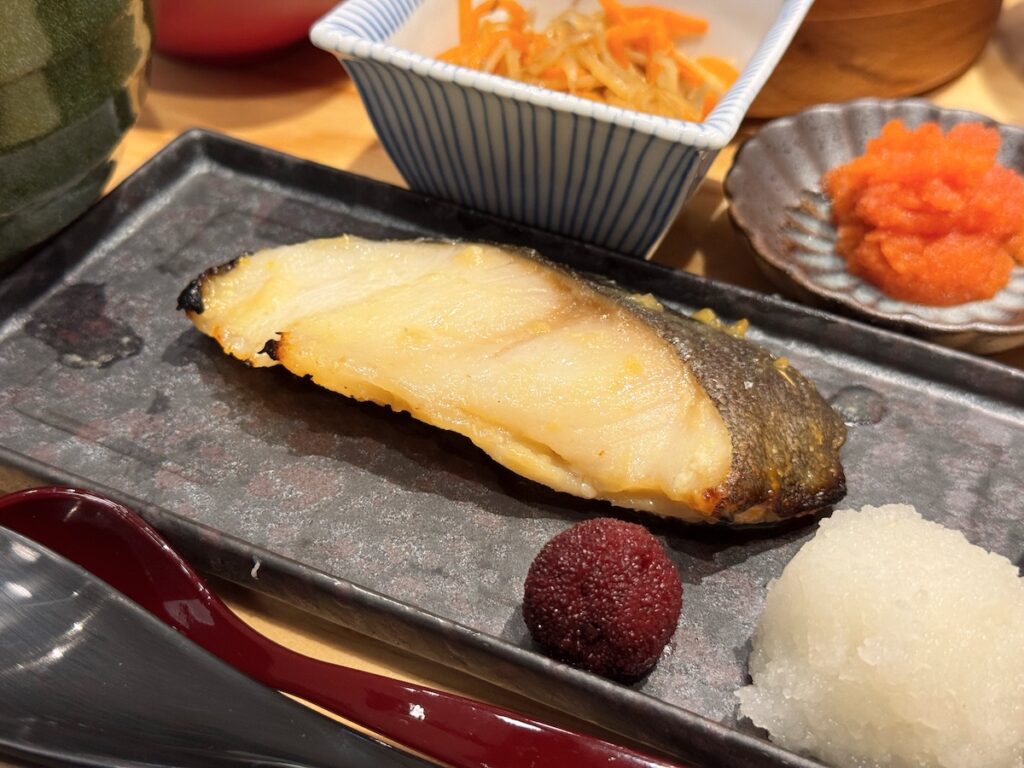 銀鱈の西京焼きは、日本の食文化にかかせない味噌・麹に漬け込まれており、食材の旨みが最大限に引き出されています。銀鱈はとろけるような食感で、しっかりと脂が乗っていて濃厚。パリッとした皮には甘みがあり、大根おろしと一緒にいただくと上品な風味が楽しめました。