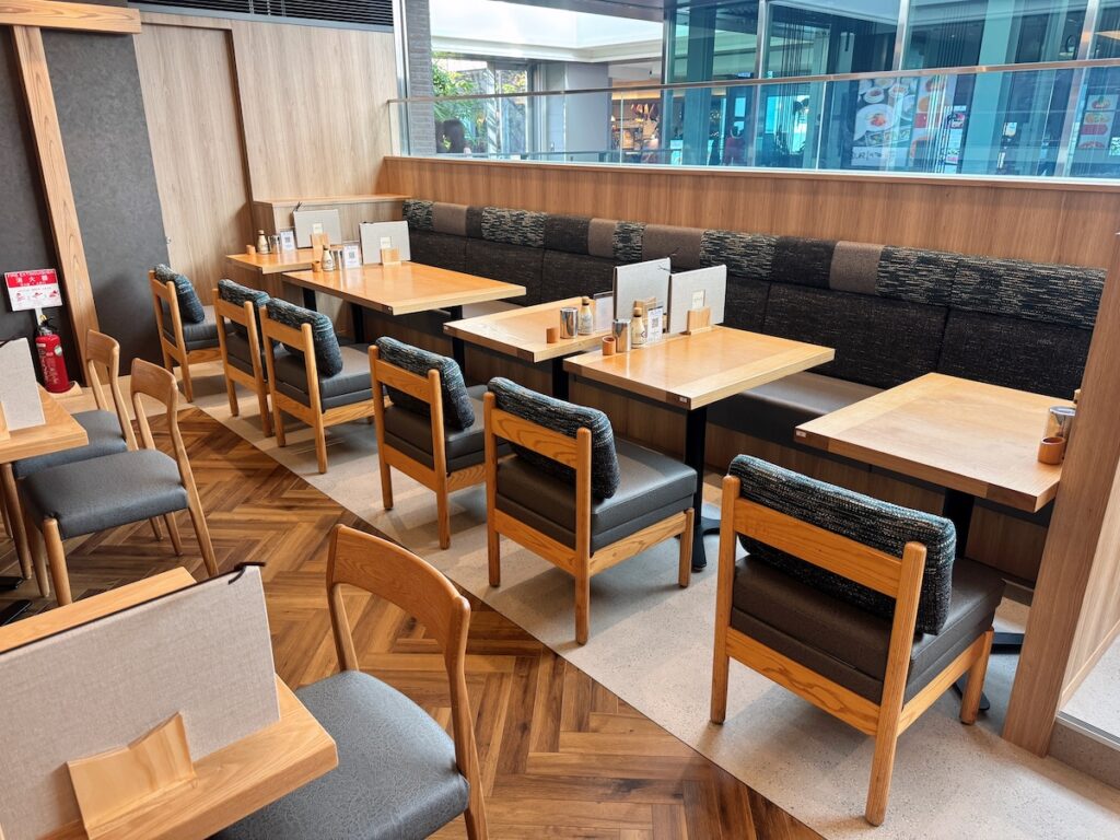 店内は横に広く開放感があるオープンなスペースで座席数は46席、落ち着いて食事が楽しめる雰囲気です。