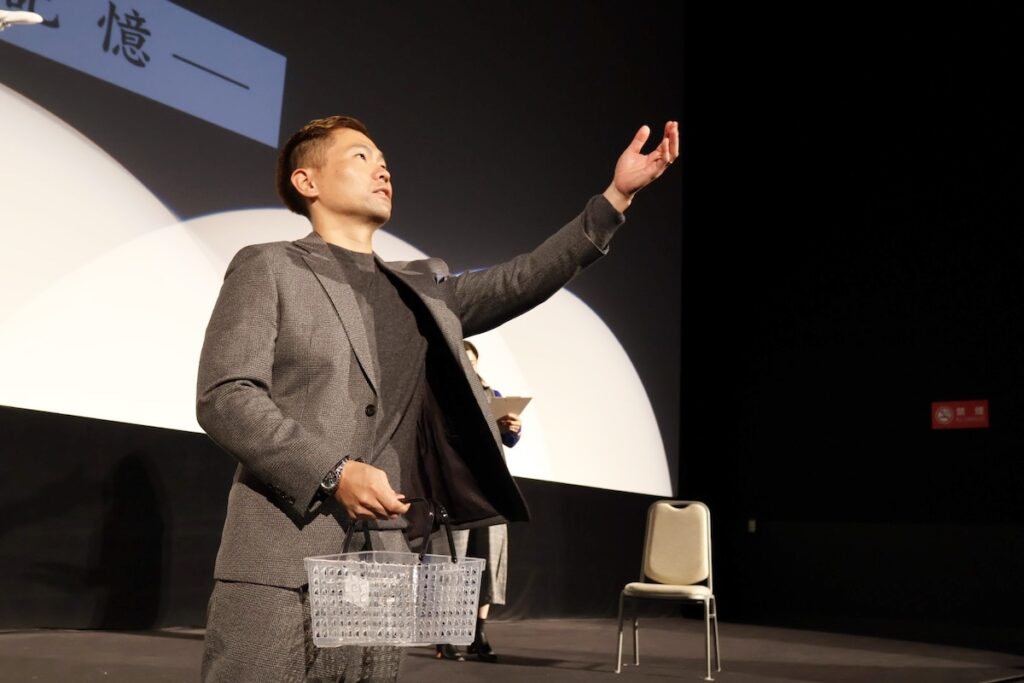 イベント中盤、ファンへのプレゼントタイムでは3選手がサイン入りタオルを客席へ投げ込む中、牧原選手はなんと先ほど現地調達したばかりのグレーのジャケットをその場で脱ぎ、客席へダイナミックに投げ込んだのです!