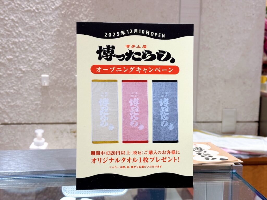 今回「博ったらし」がオープンしたのは、JR博多駅直結のお土産処・マイング博多内。SNSでもの便利さに加え、マイング博多に足を踏み入れたすぐにある好立地で時間のない時のお土産選びにも最適です。