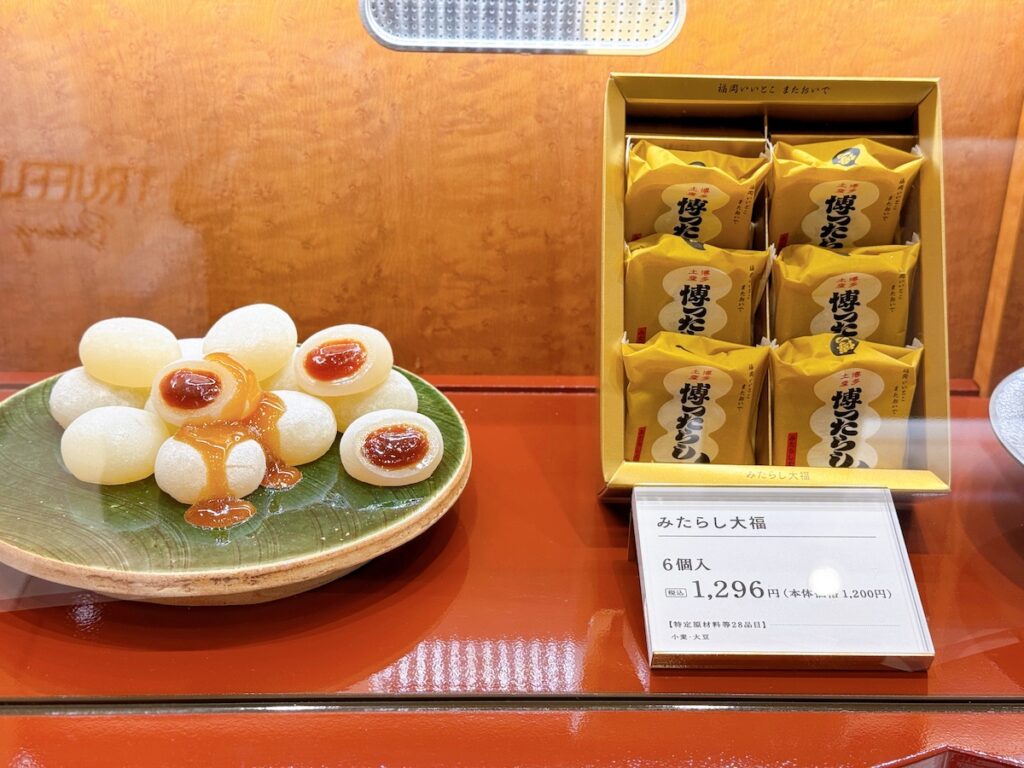 「みたらし大福」は福岡県製造の特級醤油で仕上げたみたらしたれをもちもちの大福生地で包んだ、お餅好きにはたまらない逸品。
