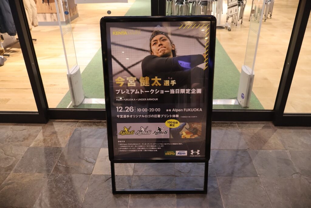 ソフトバンクホークスの今宮健太選手を招いたトークイベントが、キャナルシティ博多内のAlpen FUKUOKAで開催されました。
