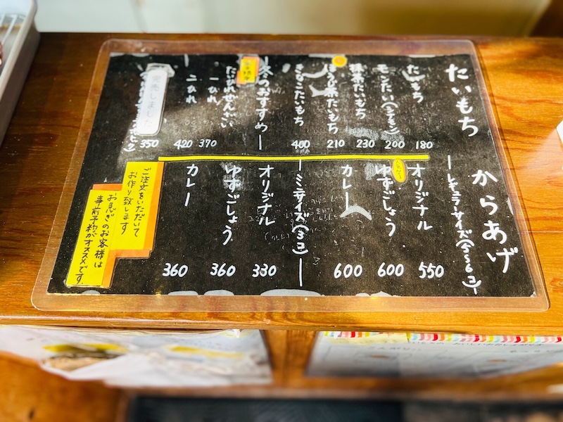 たいもちにはシンプルな「たいもち(180円)」をはじめ、シナモンの「モンたい(200円)」、「抹茶たいもち(230円)」、新メニューの「ほうじ茶たいもち(210円)」などさまざまなフレーバーがあります。