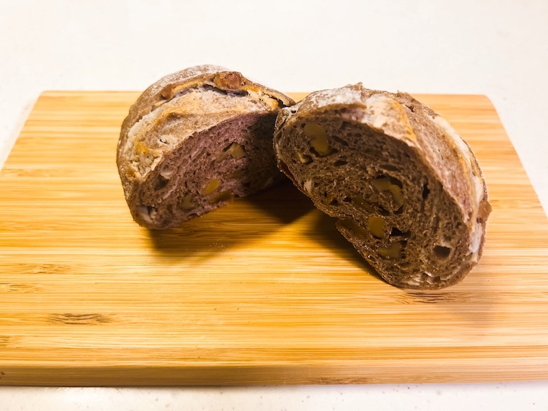 こちらの「全粒粉くるみクリチパン(420円)」は全粒粉のハードパンの中にくるみとクリームチーズが入っています。卵・牛乳を使わず全粒粉をメインに作られたパンは添加物を最低限まで取り除いたダイエット・健康にも良いメニューです!
